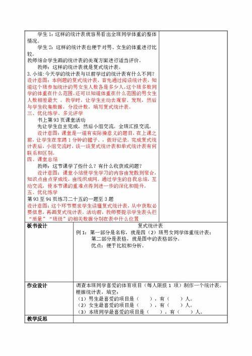 3. 图表制作:教你如何将收集到的数据制作成复式统计表,包括表格的设计、数据的填充、图表的绘制等。