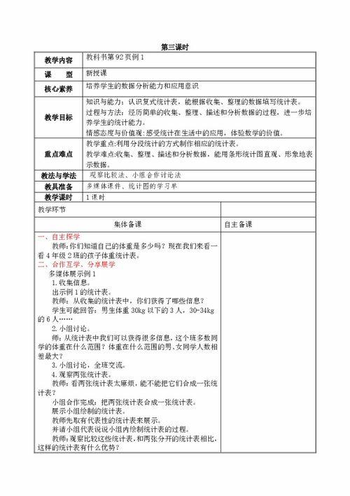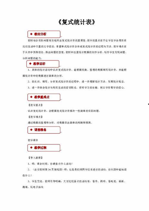 首先,让我们来了解一下这些复式统计表教学视频的基本情况。这些视频通常由专业的教育工作者或者经验丰富的老师制作,他们深知学生们在学习过程中的痛点,因此,在视频内容上下了不少功夫。